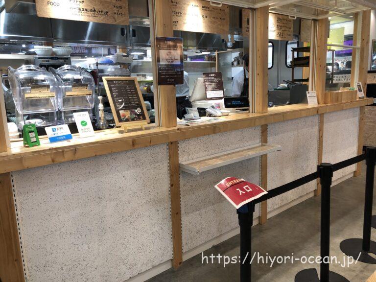 先会計のカフェスタイルで、ホットドッグやチーズケーキなどの軽食も食べることができます。