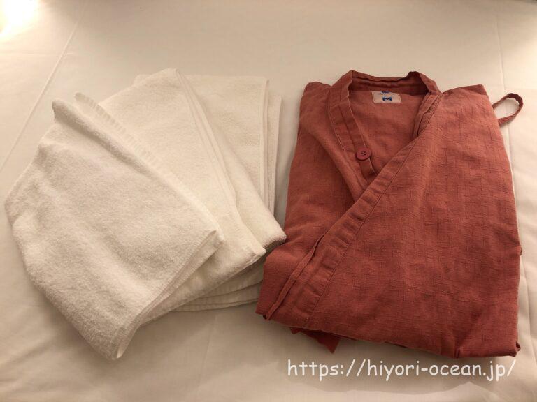ほかにバスタオルとフェイスタオルが一緒に、メッシュ素材のバッグの中に入っています。ロッカーに入っているので、カプセルに向かう前にロッカーから取り出しておきましょう。
