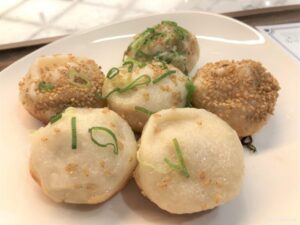 赤いのが秘伝のたれ。あまり辛いと嫌だなと思ったのですが、ちょっとしたピリッと感がよいです!少し多めでも食べれそうかも。